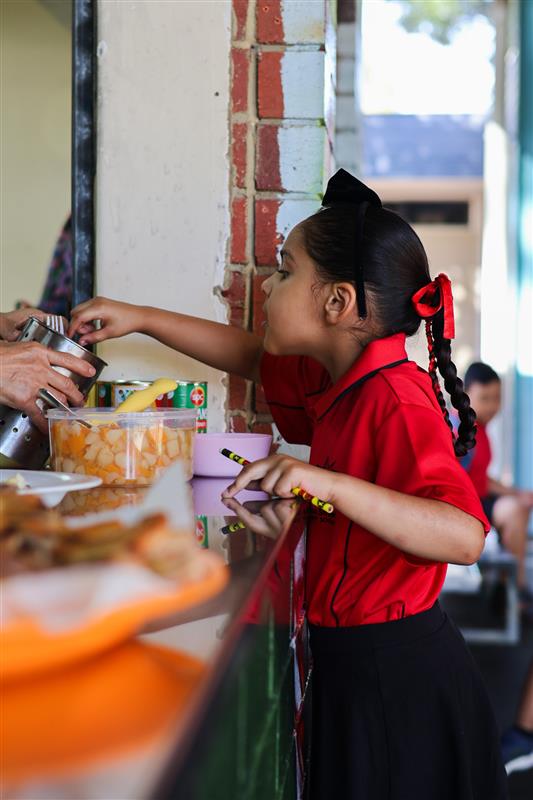 Gibbs Street Primary School student gets ready to dig into breakfast.