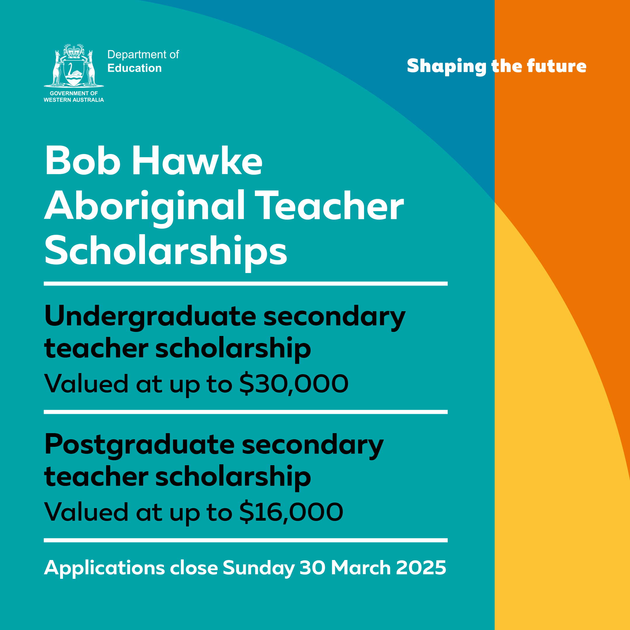 Use this poster to share that applications are now open for the Bob Hawke Aboriginal Teacher Scholarships.
