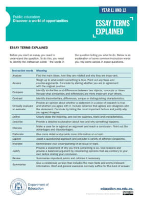 Essay terms explained for students in Years 11 and 12.